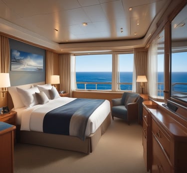 Spacious suite with private balcony, ocean views, and modern amenities designed for ultimate relaxation.